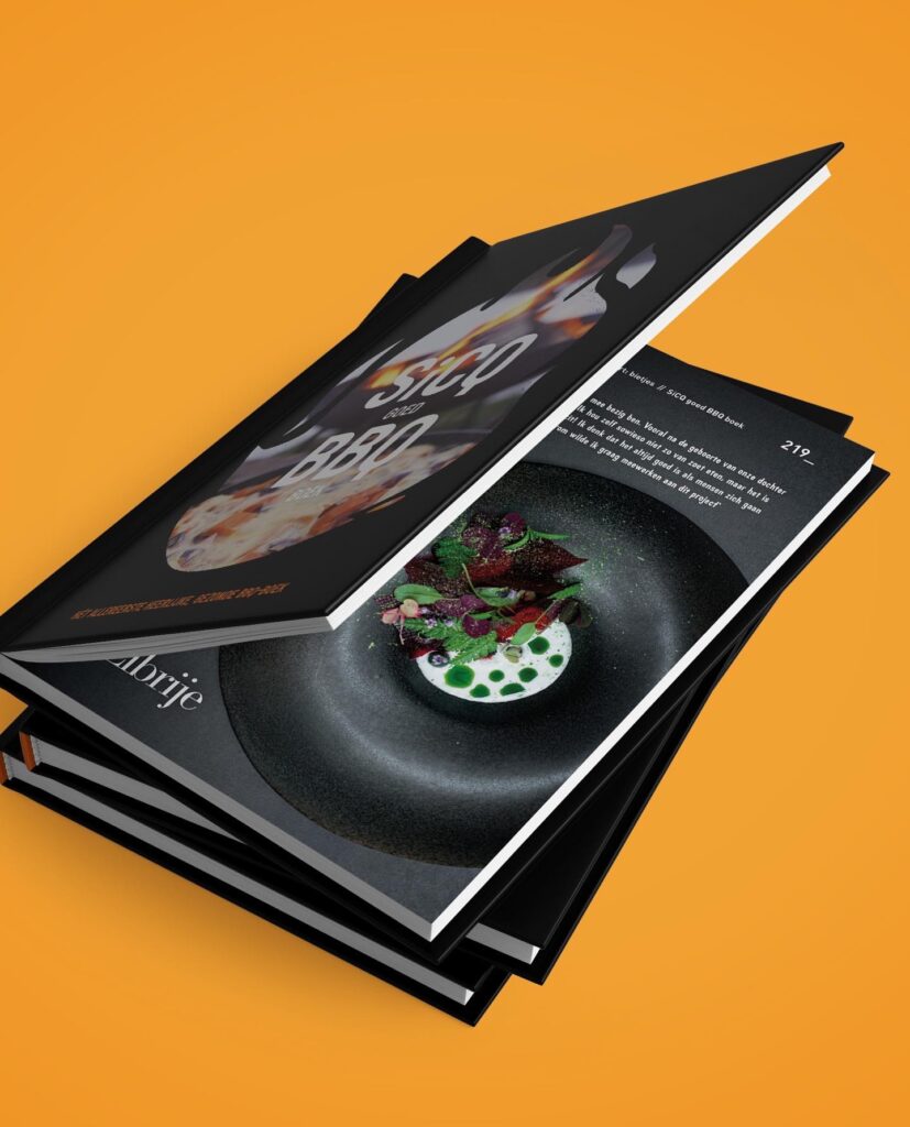 Ons barbecue boek is een boek dat vol staat met gerechten die wij allemaal in de keukens en sterrenkeukens hebben gekookt voor onze gasten. Deze gerechten hebben wij vertaald naar de barbecue en hebben het ingredient, houtskool, hout, temperatuur en rook aan de recepten toegevoegd.