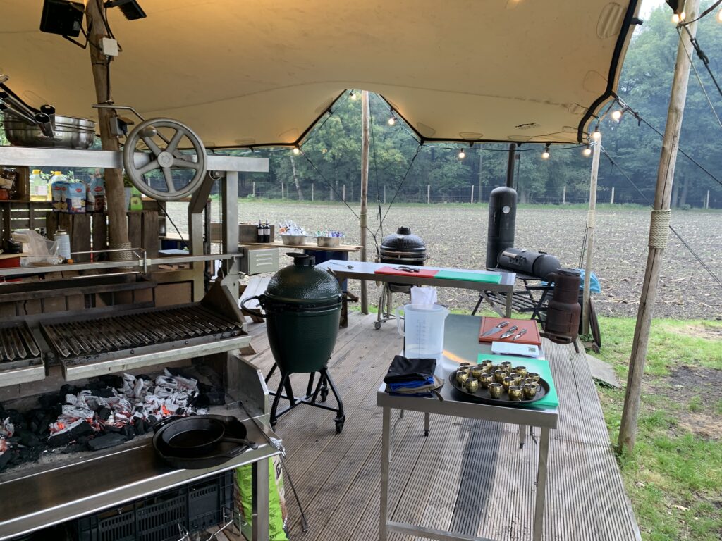 Op elke locatie hebben wij een BBQ speeltuin. Wij hebben ons nooit gekoppeld aan een merk BBQ. Dat komt omdat wij willen werken met de barbecue die passend is voor de bereiding. Net als houtskool is de BBQ ook van belang voor de juiste garing en smaak. Daarom hebben wij als barbecues; Grilltrailer smokers, Keij en Green Egg kamado’s, Grilltrailer Santa Maria grills, Grilltrailer vuurpits, Konro grills, Keij Hibachi grills, HomeFire braais, Grilltrailer Parilla grills, Hunsaker drumsmokers,, plancha barbecues zoals de Ofyr of de Artola. Het leuke is wel dat de meeste recepten thuis allemaal op een gesloten barbecue te maken zijn. Maar het is ook leuk om met het grote werk aan de slag te gaan.