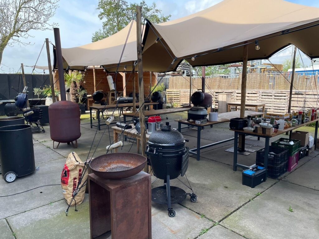 Onze bbq workshops geven wij in een geweldige BBQ pit, vol met kamado’s van Keij, een Zuid Afrikaanse braai, shichirins, open vuurpit van Grilltrailer, de echte American offset smokers van Grilltrailer, de open vuur schalen, de Basale en een Mallmann open vuur kooi.